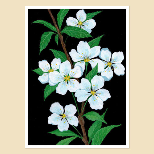 Blossoms - A5 Black Botanical Print